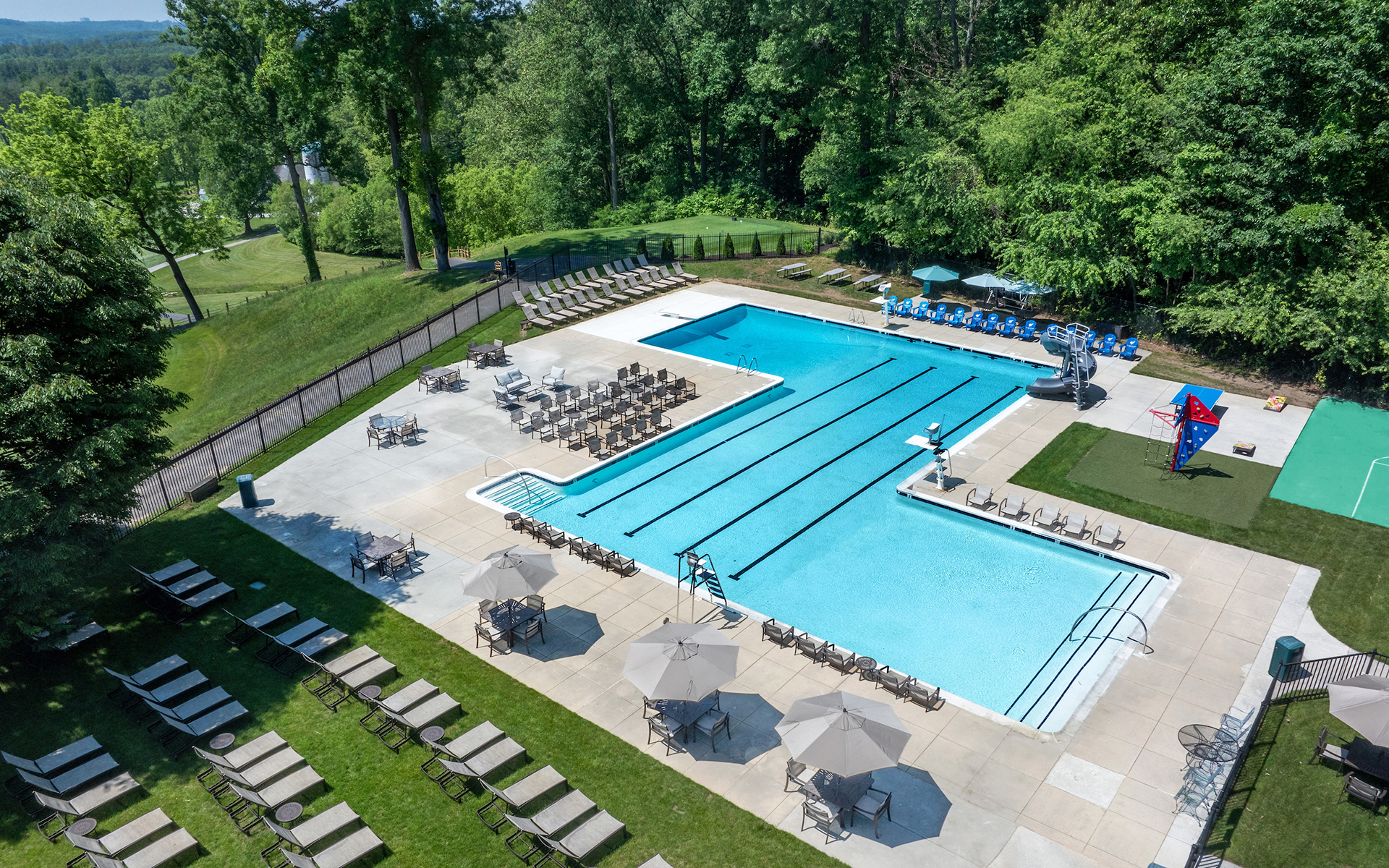With both a family-friendly wading area and an Olympic-sized pool to help Members stay refreshed on even the warmest of days, swimming at the Eagle’s Nest is a summertime tradition. And just beyond the edge of the pool, generous patches of cool grass and tree-shaded lounge space keep the swimming area cooler on hot days.